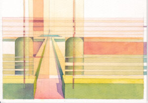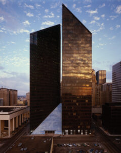 In the latter part of the 20th century, a group of architectural patrons built a significant collection of single family homes, many by noted architects, in the Dallas neighborhood of Preston Hollow. Among these are Frank Lloyd Wright’s Gillin House (1958), followed by the Beck House (1964) by Philip Johnson, the Whatley House (1984) by Edward Larrabee Barnes, and the Stretto House (1992) by Steven Holl. Stretto is not the least among these. Survey books compiling architecturally innovative residential design usually include Stretto, to the point that it has become a canonical work of Holl’s, despite his exhaustive output of breathtaking buildings in the years since. The house was commissioned by the descendants of Harold C. Price, who built the Wright-designed Price Tower in Bartlesville, Oklahoma. This family’s degree of connoisseurship, further evidenced by building Holl’s visionary structure, was and remains amazing.
