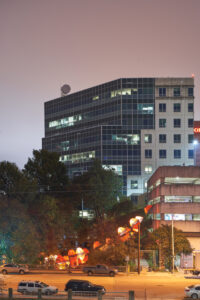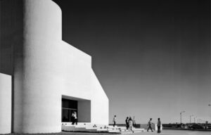 The Transart Foundation is a space dedicated to the intersections between art and anthropology. Located on West Alabama Street in Houston, just blocks from the Menil campus, the complex consists of a new gallery building and a smaller remodeled private art studio. The new building, a sliced trio of white stucco volumes, sits perpendicular to the street. Its well-detailed facade peels away at its corners like a billowing sail, revealing graceful windows at some places and formal indentations at others. Inside, two triple-height galleries animated by the light from the tapered windows provide space for art, while a central core houses meeting, storage, and support spaces.