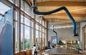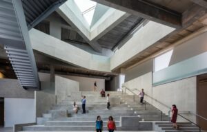 The “dogtrot” is a porch separating the house’s live/work components and expands into an outdoor living room.