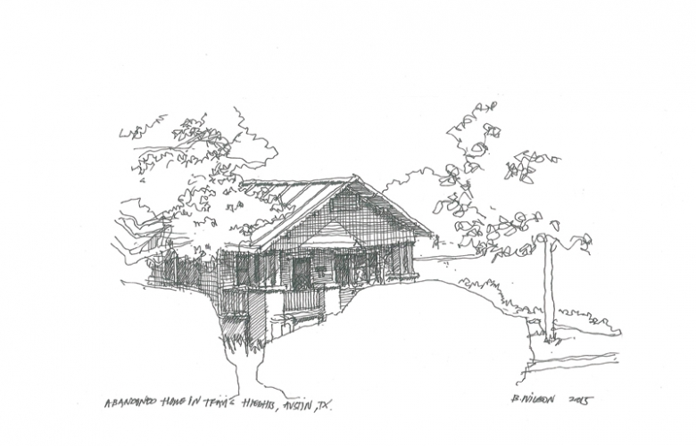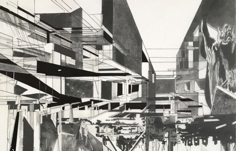 Nobody Talks About the ‘F’-ups. Representation has historically made a declaration to the imaginative and provoking edges of architecture — it tells a story. The process of producing that drawing can greatly clarify an idea if it is drawn for feedback. Pen to paper or stylus to screen, the necessary physical drawing of the line is less about a precise image and more about exploring how concepts and ideas are expressed, and what else it brings attention to. In my early days, I interned at EMBT, an office that took an analog approach to both drawing and models, at the time. There, I learned there was opportunity in error: a chance to study how our work could be interpreted, or even, in some cases, productively misread. My work involves many false starts. The process is nearly cinematic storyboarding, where it involves expanding or compressing the frame — managing depth of field by moving vanishing points or even adding points for distortion. It’s also sometimes appropriate to exaggerate the scale of elements. Ultimately, in representation, failure is necessary to evolve. So, there is no stack of trace so thick or digital layers so dense that I wouldn’t embrace starting over until the drawings are maximized for visual narrative. Early sketches are a broad marker (Sharpie and sign pen) on white trace paper. Once the basic composition is set, I begin refining an element at a time. This gives me the opportunity to iterate on a particular detail or develop common elements like background buildings or foreground trees and also helps to reposition or rescale. This results in patches of trace and masking tape, which can become parts of the composition. The final linework is micropen on vellum. If the decision is to add color, I might do the final on trace and use “Prisma” and “Chartpak” markers. Using trace versus an opaque paper gives me the opportunity to color on both sides of the paper. The more hybrid drawings have a similar start that gets scanned for color. Sometimes I’ll jump right into Photoshop, starting from a blank screen. Using a Wacom Cintiq (a digital pen display screen), I’ll simulate the same analog process as digital layers. When the goal is to tell a panelized story (like a comic book), I’ll complete the layout in InDesign.
