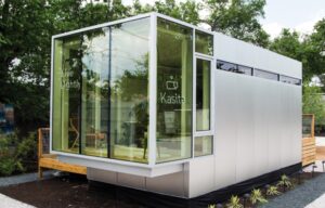The property retained an existing shed, an “art barn,” that served as SCHAUM/SHIEH’s studio and is now set up for visiting artists. The building was re-clad in oversized HardiePlank siding painted a dark gray, which causes it to retreat and become a solid background for the sculptural gallery up front.