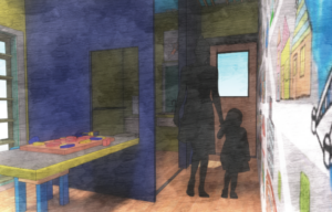 Concluding the day-long tour was a visit to the ground floor of the Hotel El Jardín, an eight-story, stucco-faced, Spanish style landmark built in 1926 and shuttered since the 1980s. Boarded-up windows and no electricity gave the dark, vandalized interior a spooky feel. Yet what was apparent was the generosity of the hotel’s high-ceilinged public spaces and the potential they will offer when the building is rehabilitated by the Brownsville Housing Opportunity Corporation, a nonprofit subsidiary of the Housing Authority of the City of Brownsville, which bought the abandoned hotel in 2019. Upper floors and a rear wing will be re-programmed with 54 affordable apartment units. And the hotel’s rear patio (a parking lot since the 1960s) will be brought back to life. ORIGOWORKS is the architect for the rehabilitation, which will make use of federal and state historic tax credits for the building’s certified rehabilitation. Jesse Miller, AIA, principal architect at Megamorphosis and vice-chair of the board of commissioners of the Brownsville Housing Authority, joined staff members of the Brownsville Housing Opportunity Corporation in speaking about the process of funding and programming the adaptive reuse of the Hotel El Jardín.