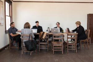 McKinney York also specifically designed a double-story space to accommodate the entirety of Raúl Valdez’s mural — spanning more than 100 linear feet — where it would be visible as a teaching tool and form part of a gathering space.