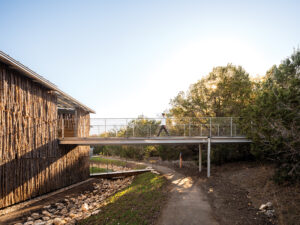 The state’s first blackwater recycling system, one of only three in the country, sits outside along with a cistern for capturing rainwater. The two tanks, nicknamed OSCAR (On-Site Collection and Reuse) and CLARA (Closed-Loop Advanced Reclaimed Assembly) will help save over one million gallons of drinking water each year and reduce the site’s potable water use by 75 percent. Notably, the project has also achieved an Austin Energy Green Building (AEGB) four-star certification and is the first WELL Gold certified building in Austin.