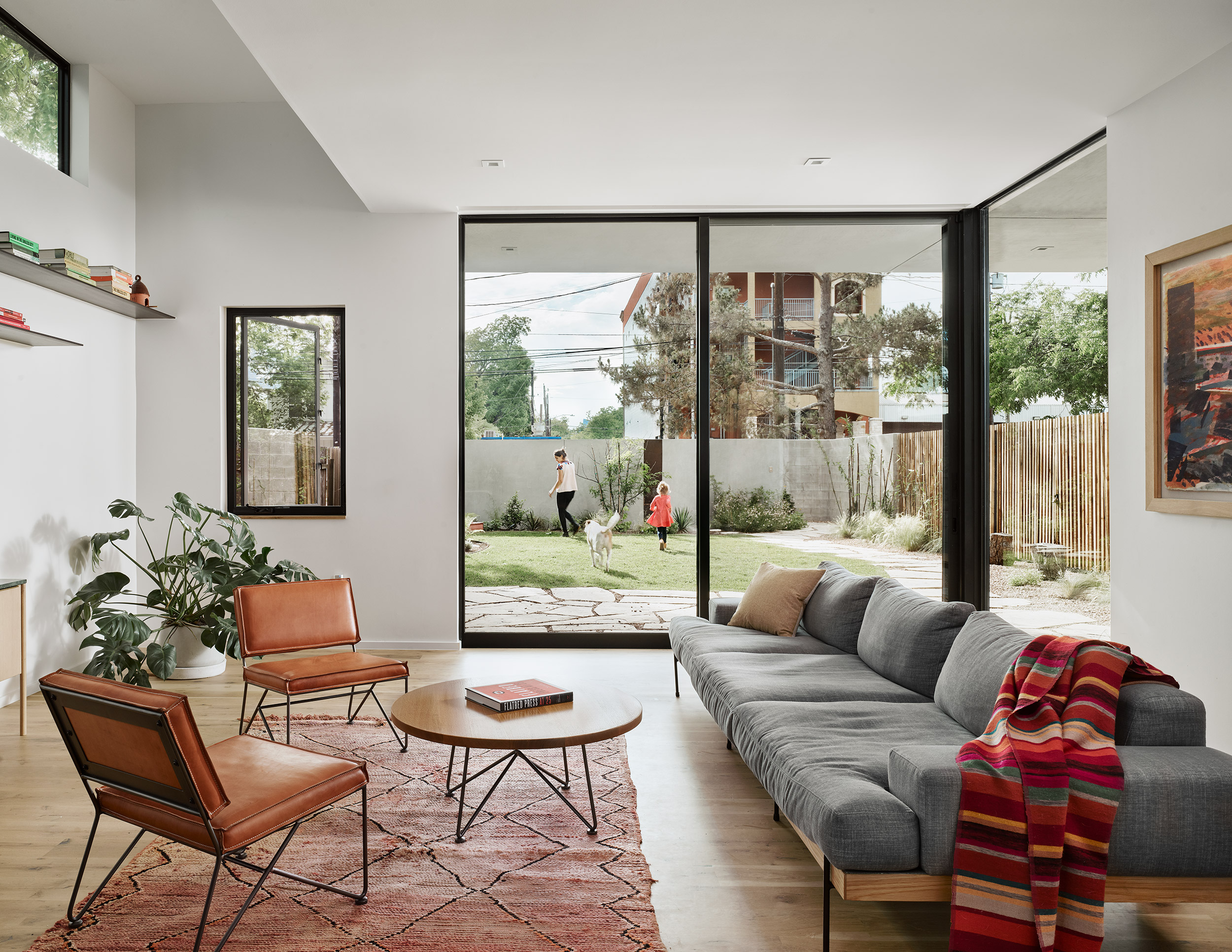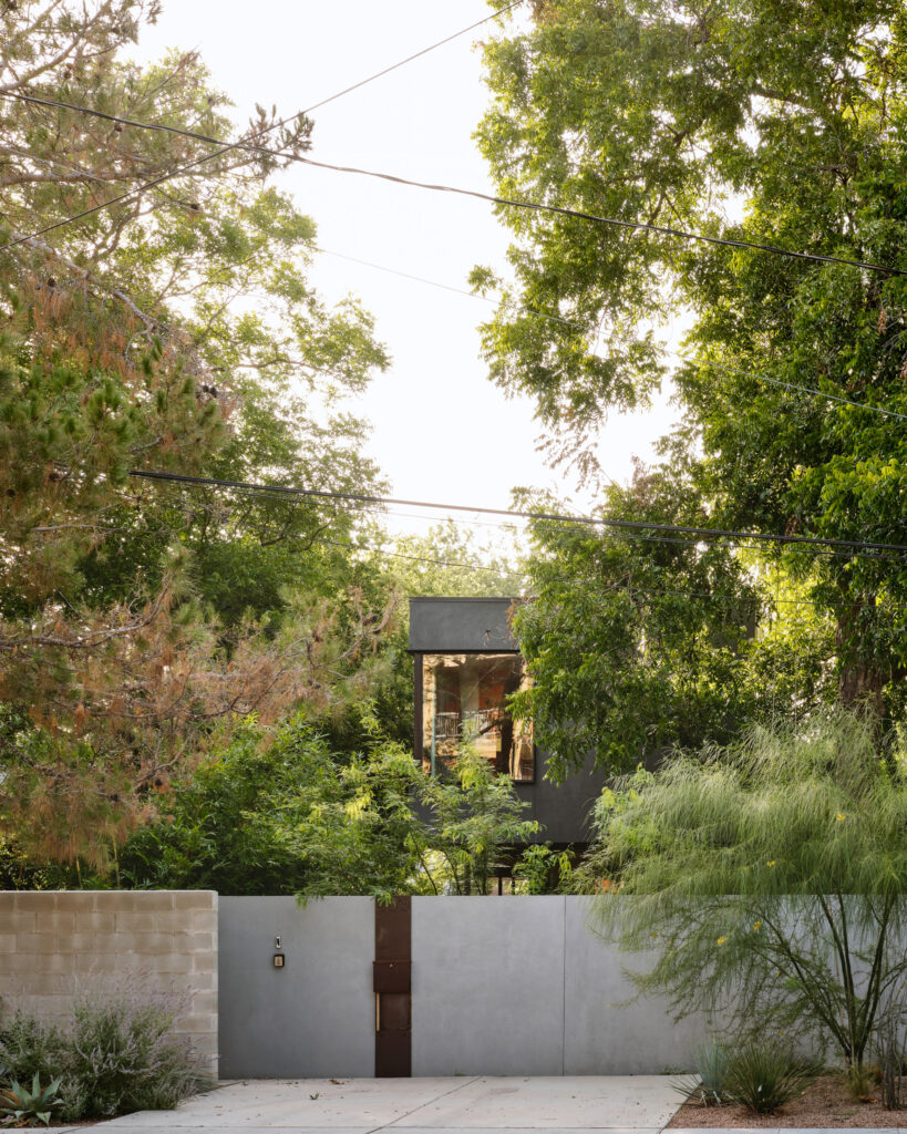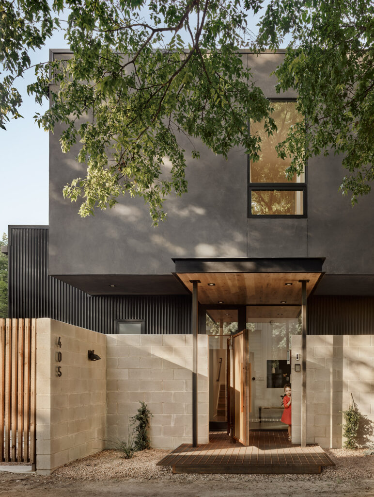 The owner-architects set out to create a home for their growing family in East Austin, prioritizing walkability, affordability, and connection to the landscape. Only one narrow lot—pressed against a busy street and auto repair shops—met all three goals. The project became an exercise in restraint, delivering elevated design on a modest budget. By pushing the two-story volume to the rear, they inverted the typical front yard–back yard dynamic and created space for a walled front courtyard with a lush, native landscape. This urban oasis allows open view from inside the home, play space for their children and dog, and a buffer against traffic. Sensitive massing respects neighboring houses, while drought-tolerant landscaping engages the street. At just over 2,100 sf, the four-bedroom home proves how thoughtful design can turn constraint into opportunity.