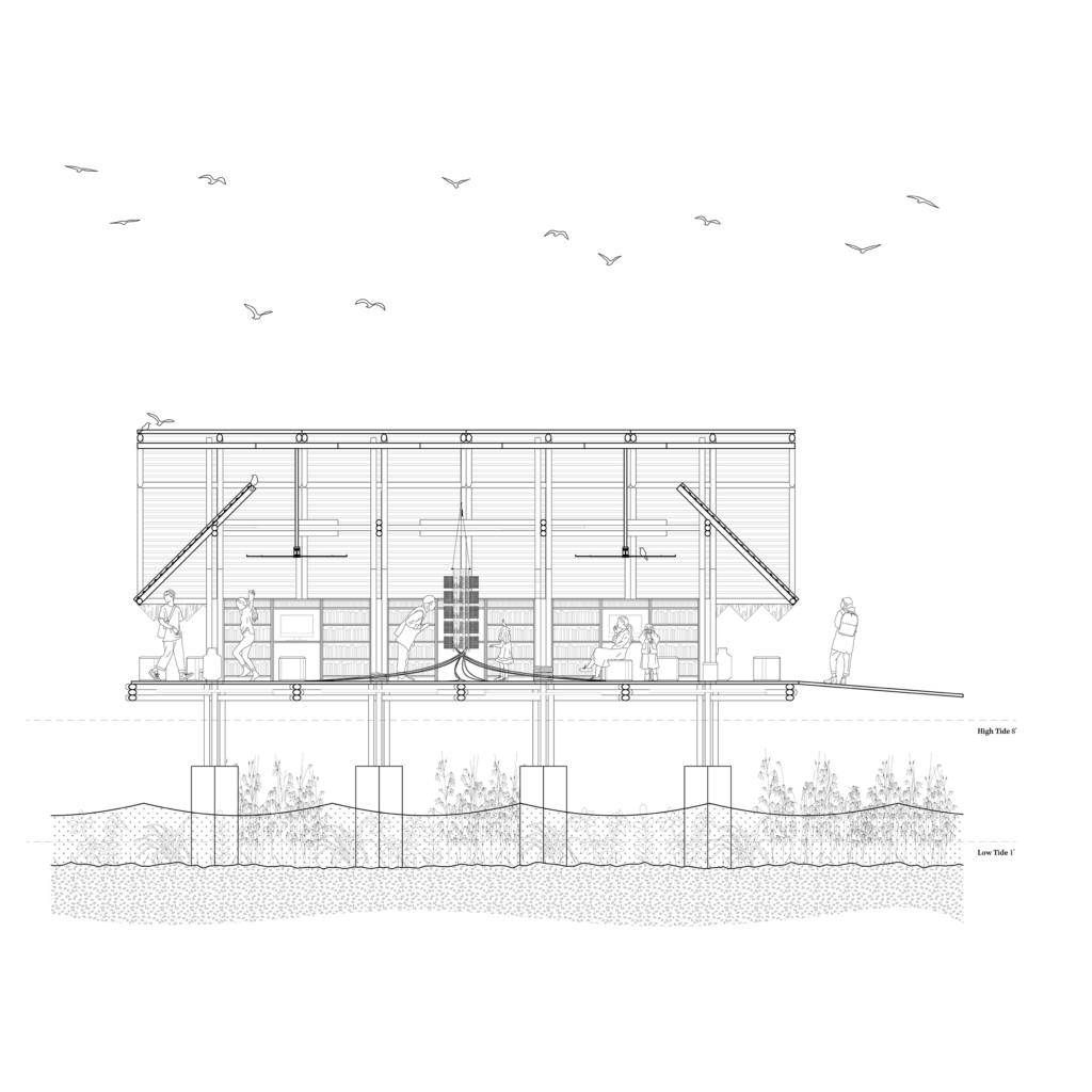 Molocaboc is a small island off the coast of Negros Occidental in the Philippines with a population of 670. Its community depends on traditional fishing and shellfish gathering, and the island has only one elementary school. For further education, students must travel to the mainland—a cost many families cannot afford. Limited infrastructure compounds these challenges, often cutting short children’s schooling. In response, this library design draws from regional tribal tattoo patterns to shape its structure, server systems, and layout. Combining high- and low-tech strategies, it is modeled on airplane black boxes—resilient devices built to protect critical data. Constructed of bamboo with recyclable, server-based systems connected to the National Power Corporation, the library offers books, digital access, and preservation of cultural heritage.