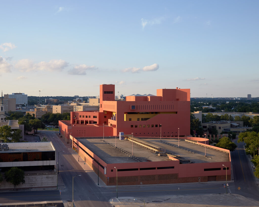 Known for its “Enchilada Red” exterior and bold geometric profile, the San Antonio Central Library offers a Texan take on Mexican Modernist design. In recognition of its role as a local landmark and cultural touchstone, the Central Library has been awarded the Texas Society of Architects’ 25-Year Award, which honors its enduring architectural significance. Designed to resonate amongst San Antonians from all walks of life, this playful building speaks to the values of involvement and festivity that characterize the city.