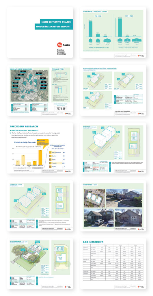 AIA Austin Housing Advocacy’s work revealed why architects are uniquely positioned to contribute to the complex challenges of housing reform. Our professional experience performing test fits and our deep knowledge of codes and processes provided vital insight into what works—and what doesn’t—for real projects. We also drew from the experiences of our clients, particularly homeowners who found their desired projects, including ADUs, impossible under existing regulations. Equally important, our visual communication skills proved pivotal in illustrating the potential applications of proposed regulations and in contextualizing both current and historical land-use patterns.