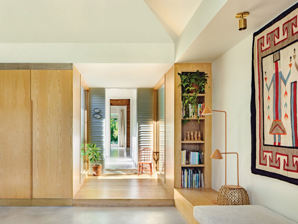 Pryce confides that the calm of the space has positively influenced his lifestyle. “I have always been someone who wants to go out, plan the next thing,” he says. “But since this was built, I actually find a lot of comfort in being at home.” Hannah enjoys how the home is well suited for family life and the fact that play can happen anywhere, remarking on how the kids quickly adopted the bridge as the best spot in the house for block building. “It just felt nice,” she says, “and now the blocks stay there.”