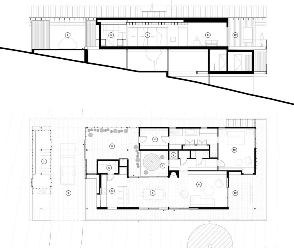 In addition to LowDO’s signature use of clean, simple details, the firm is known for its penchant for iteration and modularity. Although complete in its current state, the home was designed with room to grow through a thoughtful structural strategy. The steel structure that cradles the house floats just enough above the cliffside to allow for future rooms and additional conditioned space.