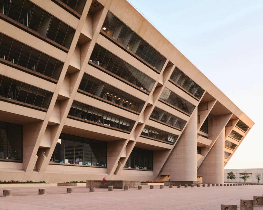 Dallas City Hall, designed by I.M. Pei and Partners and opened in 1978, perfectly embodies this tension. At the time, Brutalism—homogenously constructed of concrete with a distinctly sci-fi sensibility—was all the rage. It signaled progress and optimism for a city eager to reframe its image in the aftermath of the assassination of President John F. Kennedy.