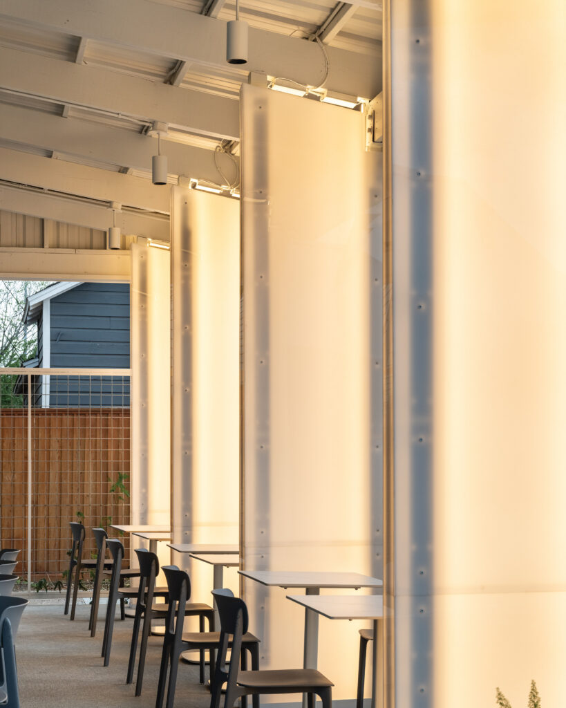 The term makeshift—sometimes implied in adaptive reuse projects—carries the unfortunate connotation of being merely sufficient and likely thrown together haphazardly rather than truly satisfactory or aspirational. However, if one can look beyond that stigma, the word also conveys a desire to provide something essential despite not having the ideal conditions, a willingness to work with what is available even when doing so isn’t easy. Architecturally, the word makeshift suggests a need to be resourceful and opportunistic, especially when it pertains to exploring the potentials inherent in what already exists. In working with Chef Shawn Gawle on the design of his new restaurant, Camaraderie, SCHAUM Architects demonstrate just this—an ability to improvise and create opportunity while working within the constraints provided by an existing building and site.