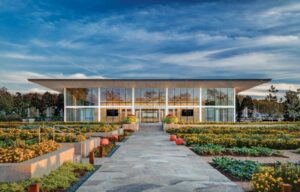 The Charlotte and Donald Test Pavilion at the Dallas Arboretum, set within the park’s edible gardens, provides a flexible space…