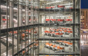 A play between solid and void, in combination with the playfully disguised parking structure, animates and breaks the building’s scale.…